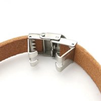 • Couper l'excédent de cuir. Attention, si le bracelet a une gravure, il convient de raccourcir les 2 extrémités du bracelet donc d'ouvrir les deux parties du fermoir (afin que la gravure reste centrée).