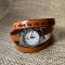Montre femme 3 tours de poignet en cuir européen, avec cadran argenté, au bracelet personnalisable par un message gravé.