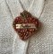 Broche ex-voto au message en cuir doré gravé " Gratitude " en perles brodées main inspirée du coeur sacré de Jésus.