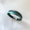 Une manchette femme en cuir aux couleurs turquoise et argent, et composée de 3 lacets en cuir .