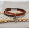 Une manchette en cuir très féminine, composée de 3 lacets en cuir qui se croisent : un cuir vintage marron, un cuir mocca, un cuir orange. Les 3 cuirs sont réunis par le pendentif central : un charme Arbre de vie (ou à choisir parmi 30) et une perle de gemme ronde assortie.