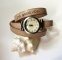 Montre femme 3 tours de poignet en cuir européen, avec cadran bronze, personnalisable par un message gravé.
