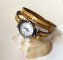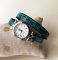 Montre femme double tour de poignet en cuir européen, avec cadran argenté et une perle ronde assortie en décoration.