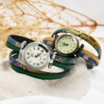 Bracelet cuir 5 tours de poignet et cadran vintage